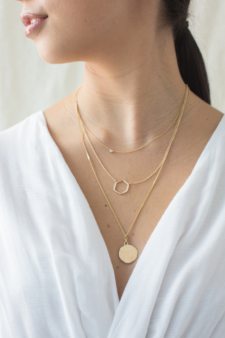 Mix and layer our everyday pieces to build your own necklace collection. Handmade in solid 14k gold and precious gems.