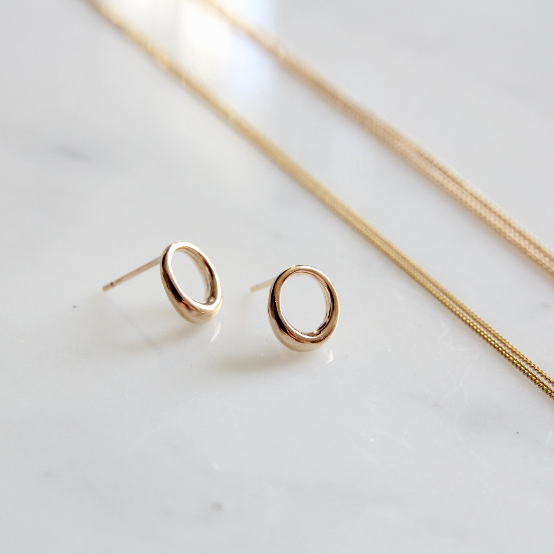 Miniature Aura form in everyday earrings. Solid 14k yellow gold.