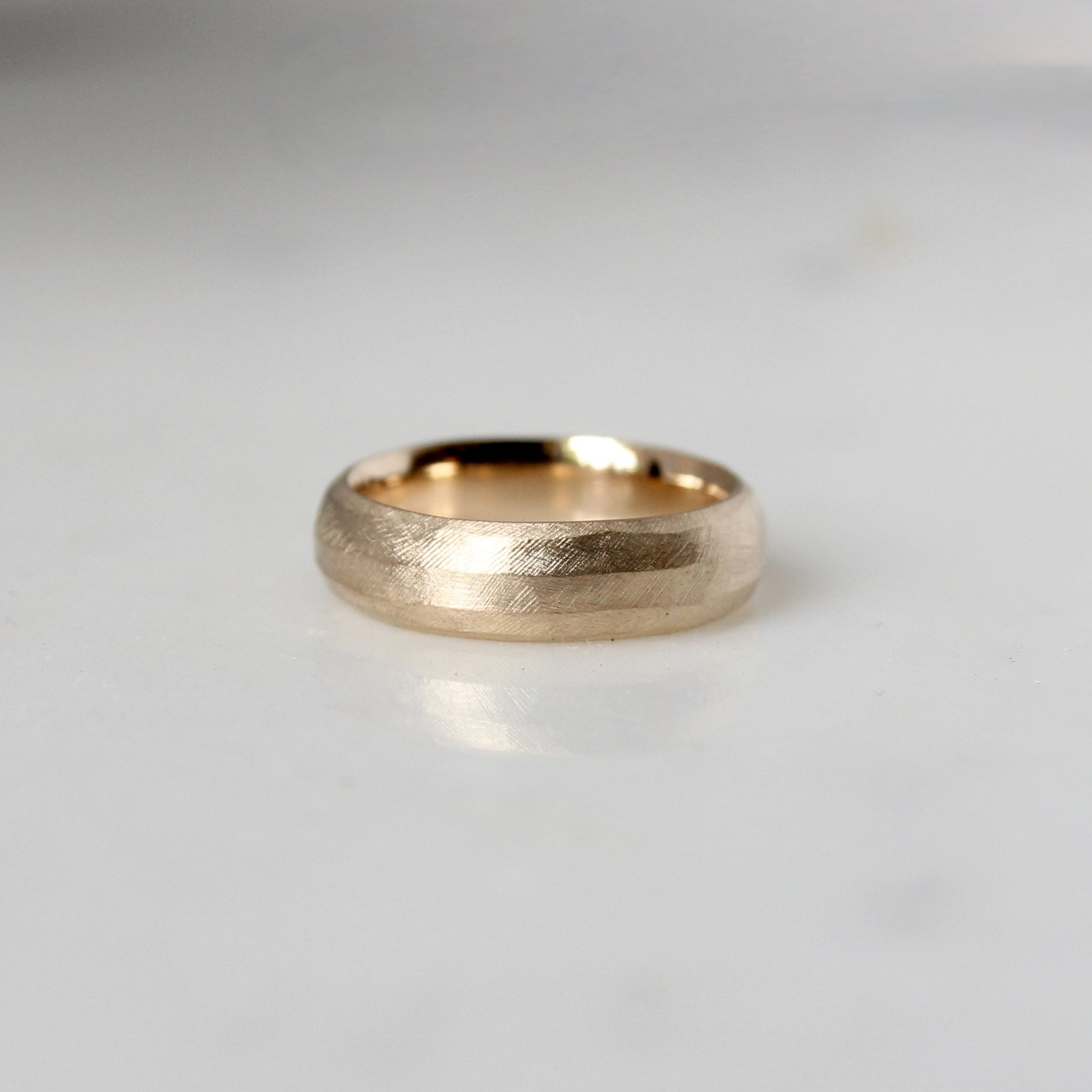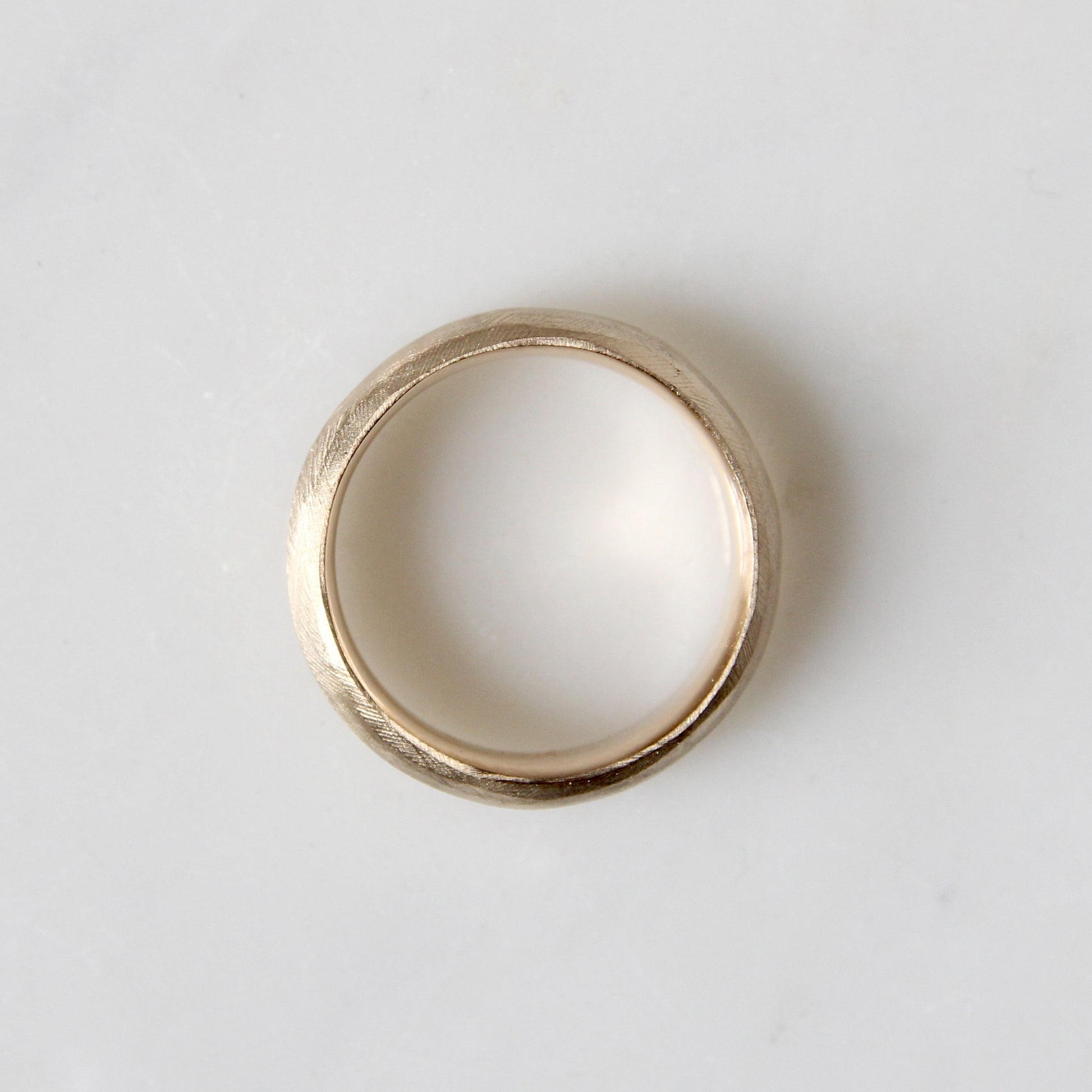 This band has multiple layers that are slowly carved away to form a domed band. It's our take on the classic half-round wedding band.
