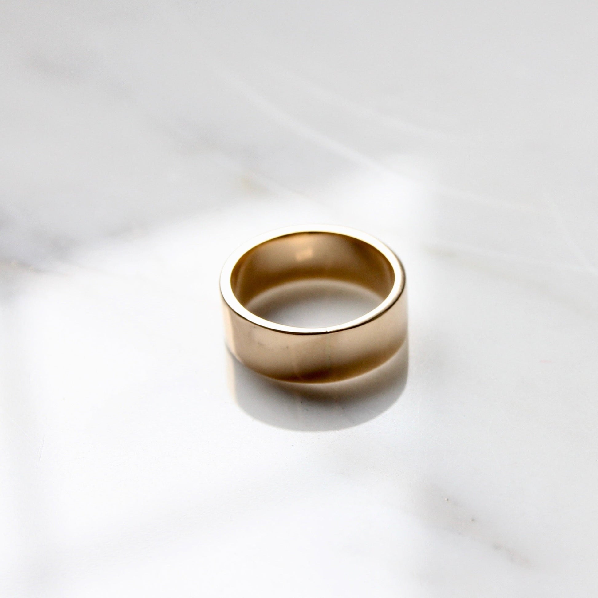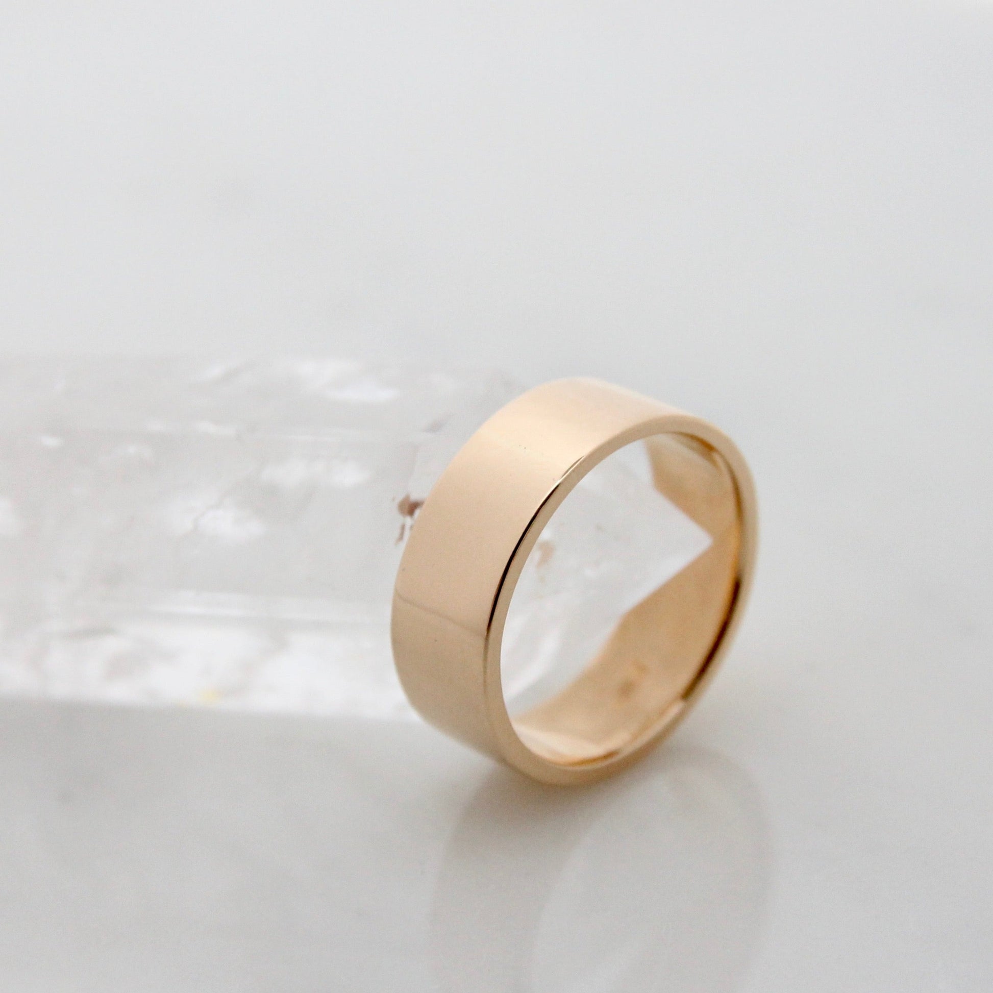 7mm wide and made in solid 14k yellow gold, this classic flat cigar band definitely has weight to it.