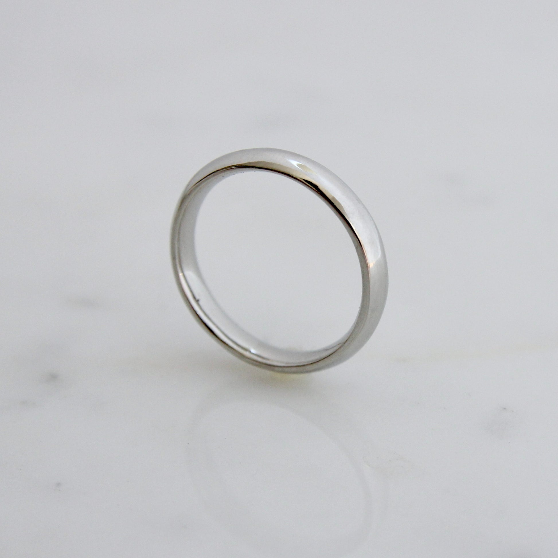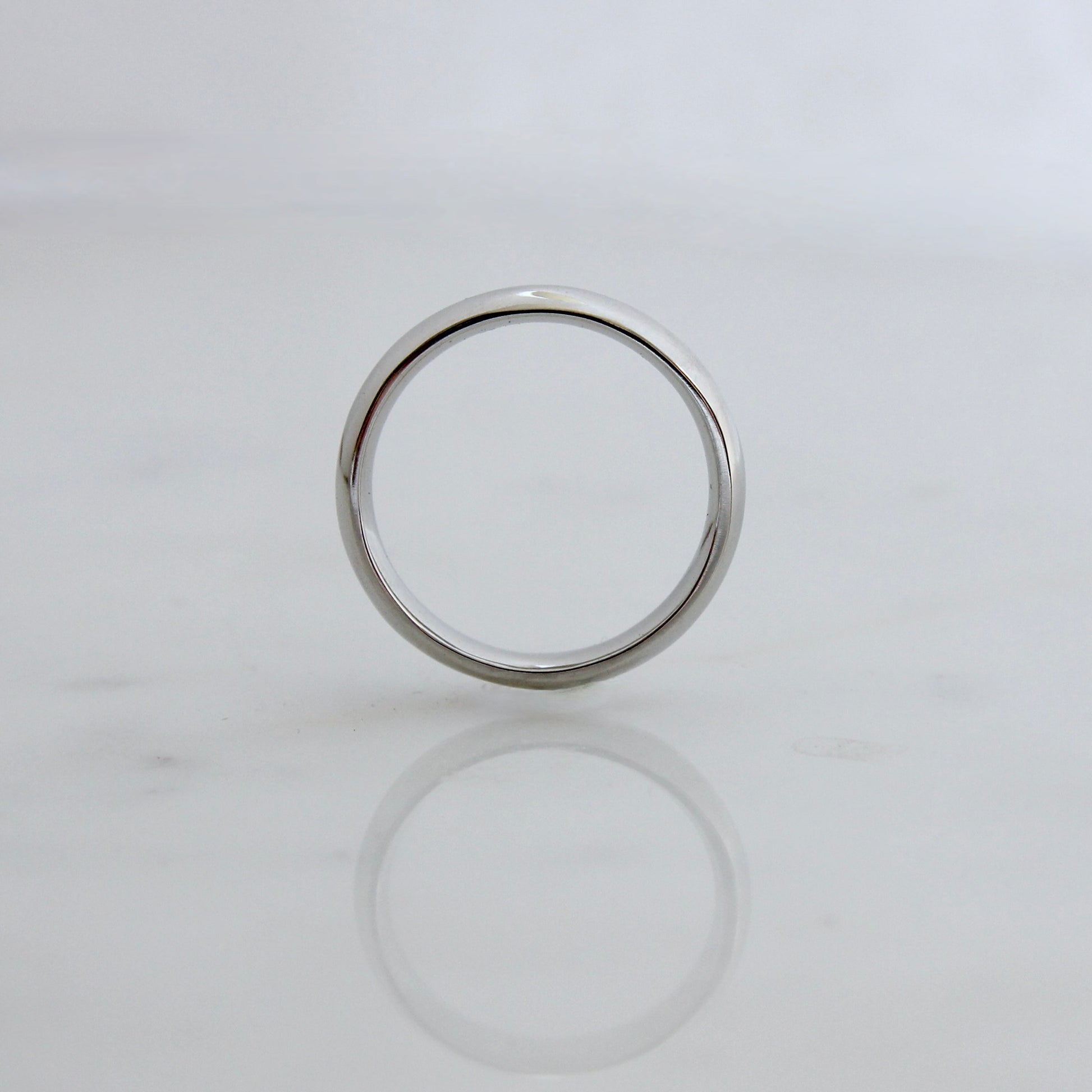 Your classic "Dad band". A half-round profile wedding band, hand carved with a comfort fit interior.