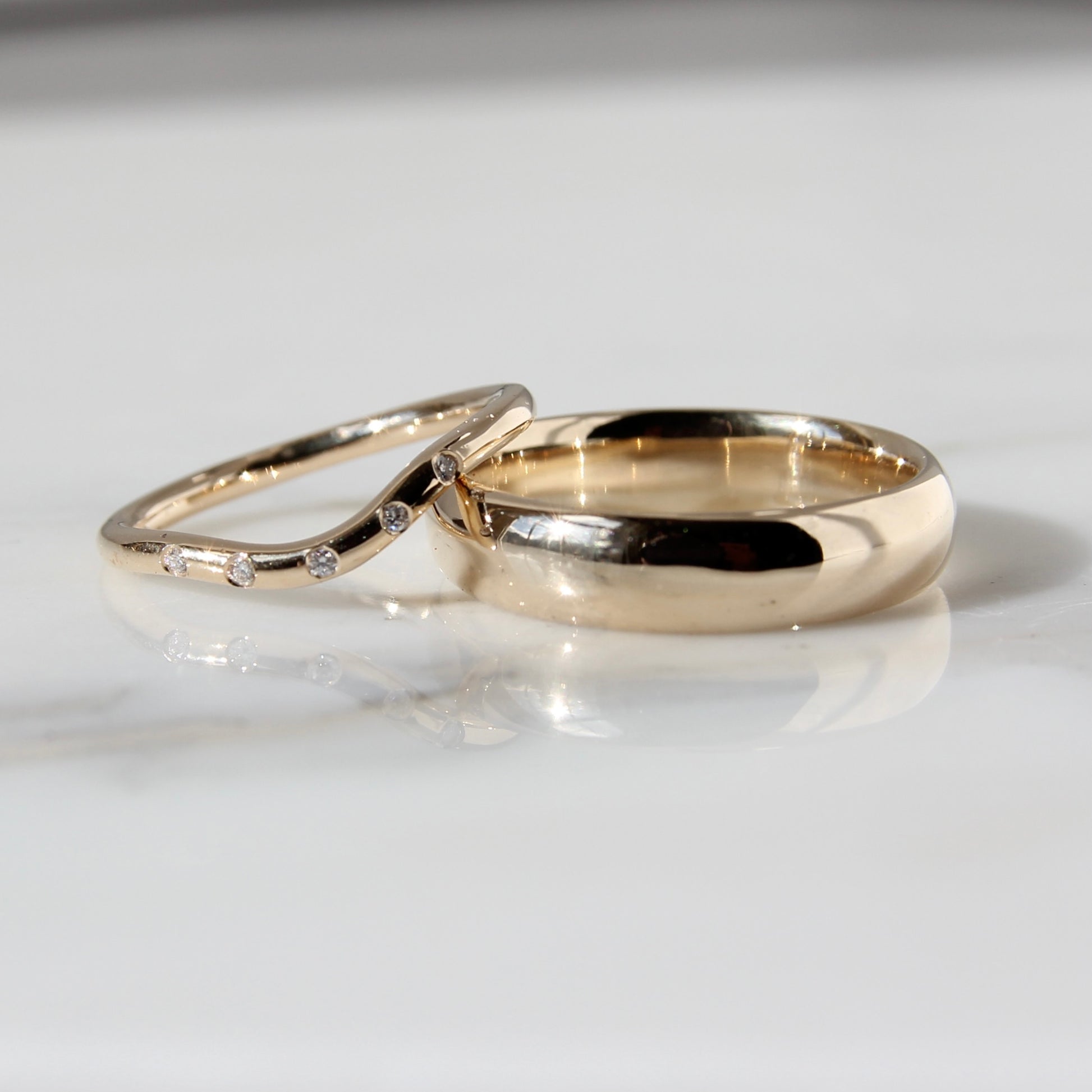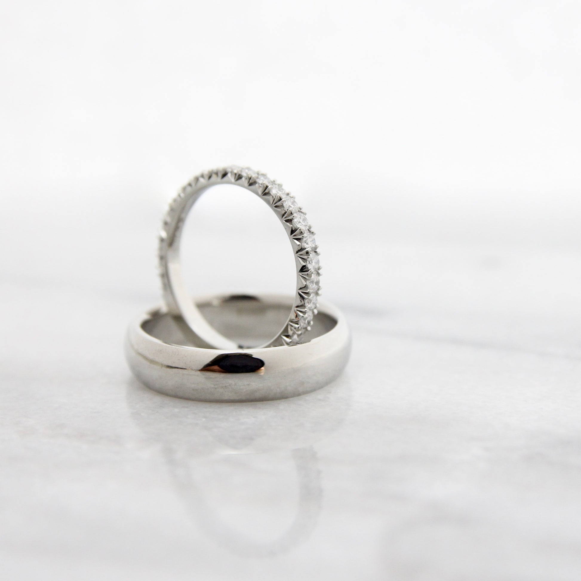 Shown in white gold with our Fishtail Eternity band and in yellow gold with our Diamond Wave band.