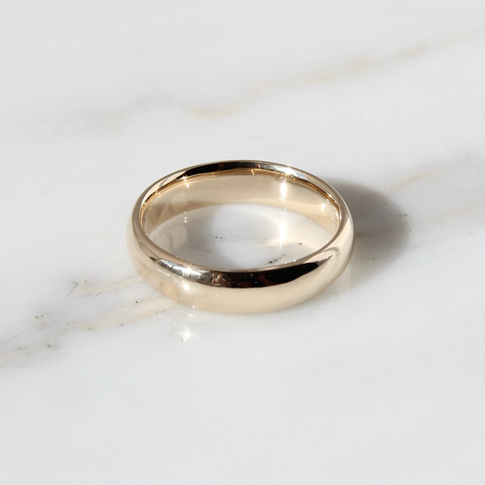Your classic half-rounded profile wedding band. Handcarved with a comfort fit interior.