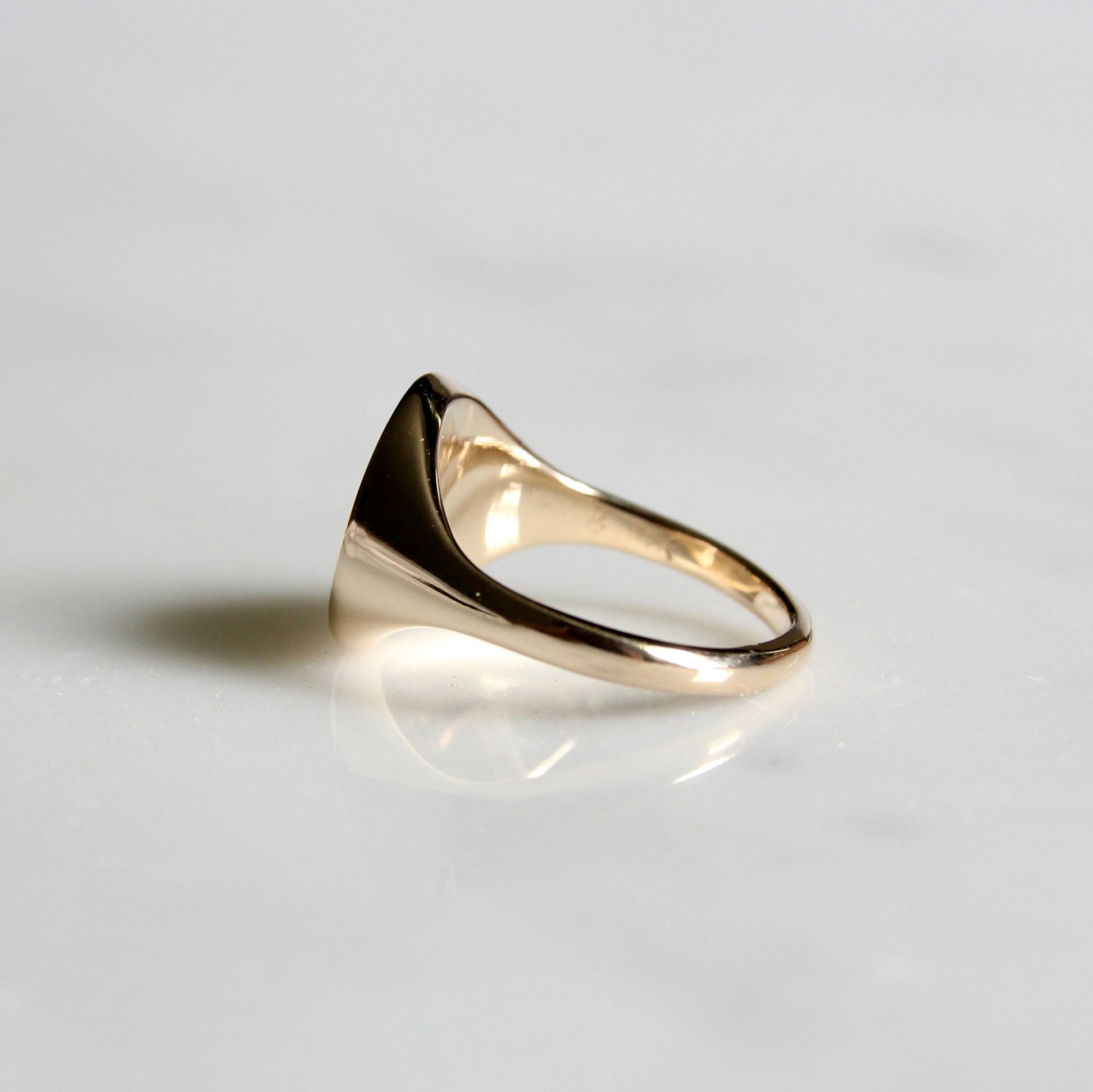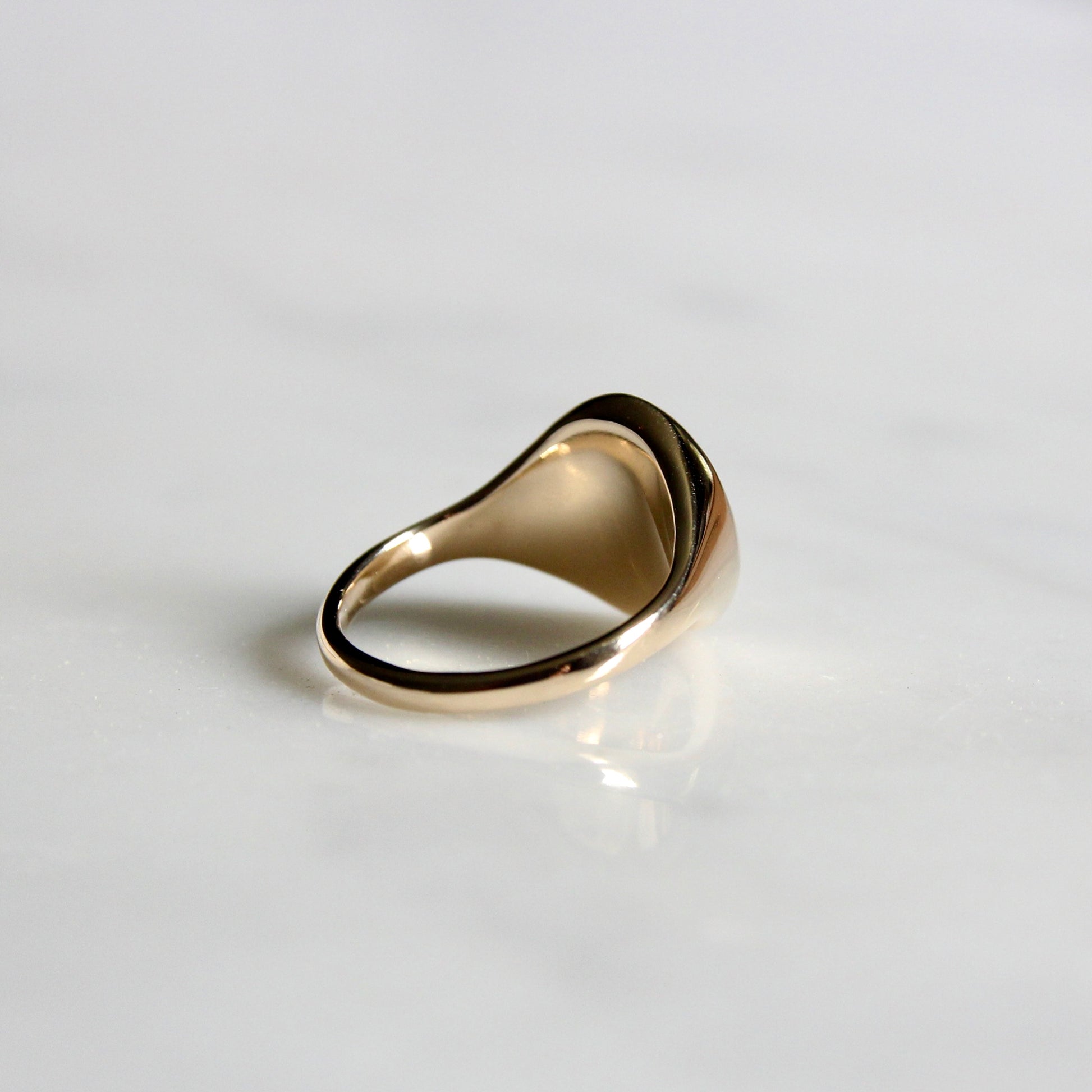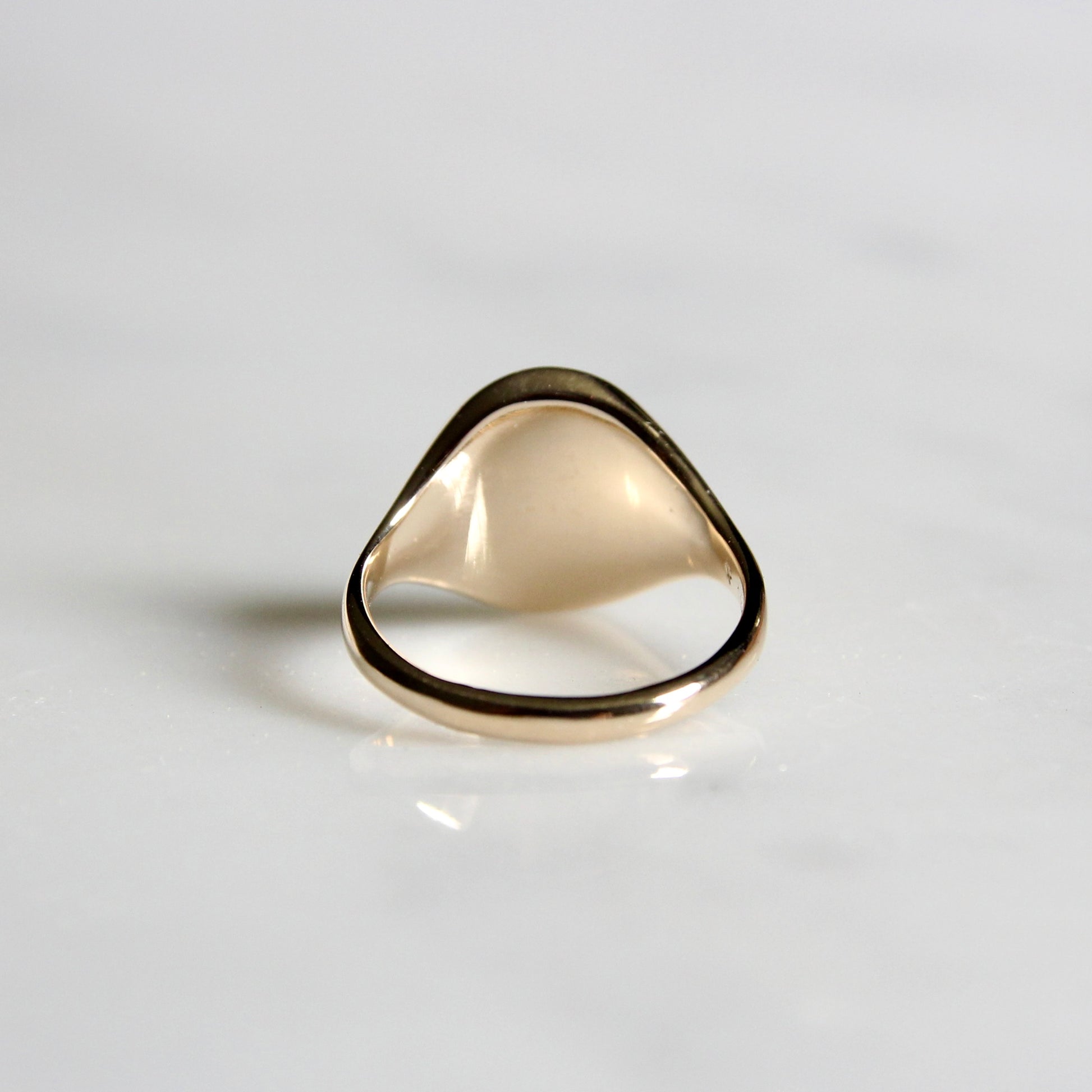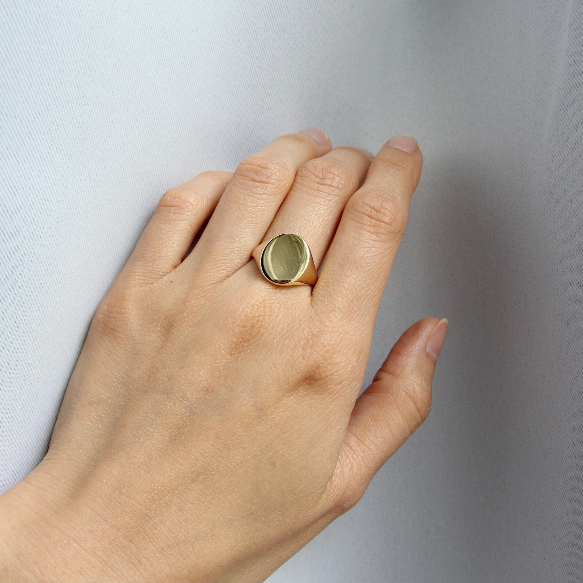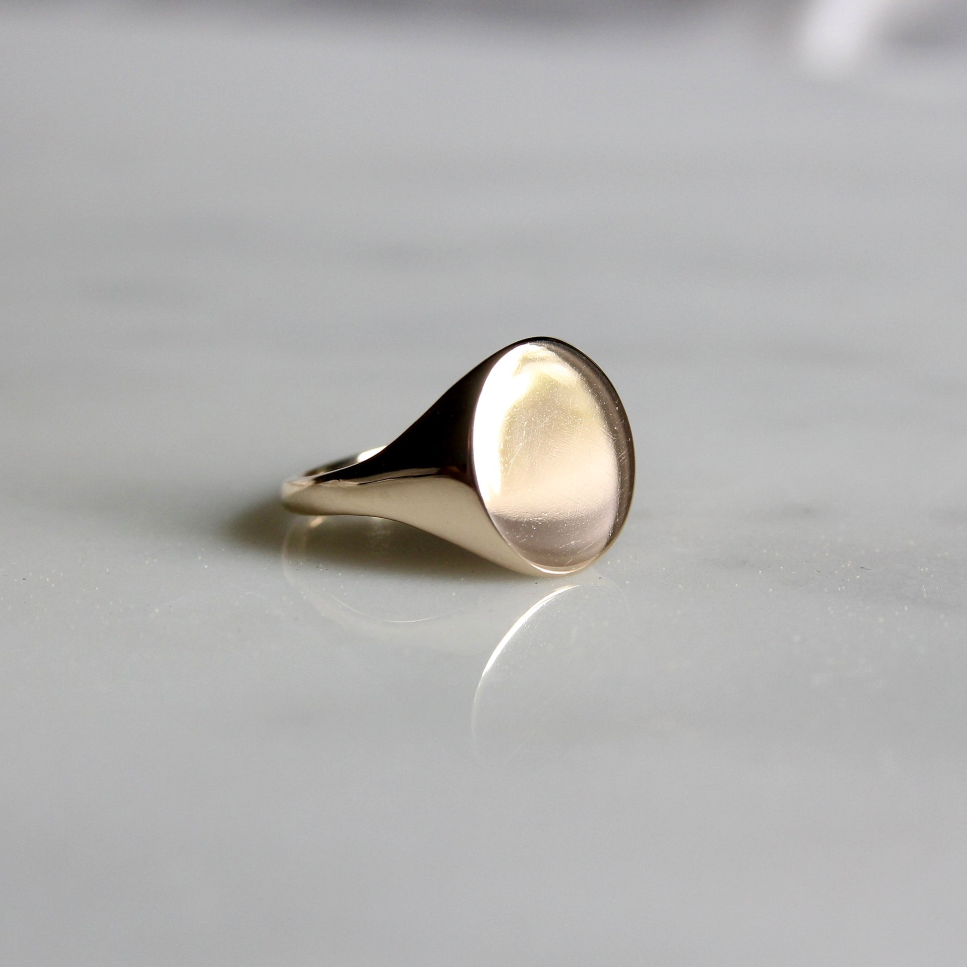 Your classic oval signet ring, but larger. 12mm x 14mm, this lady has some serious spread and is made of solid 14k gold.