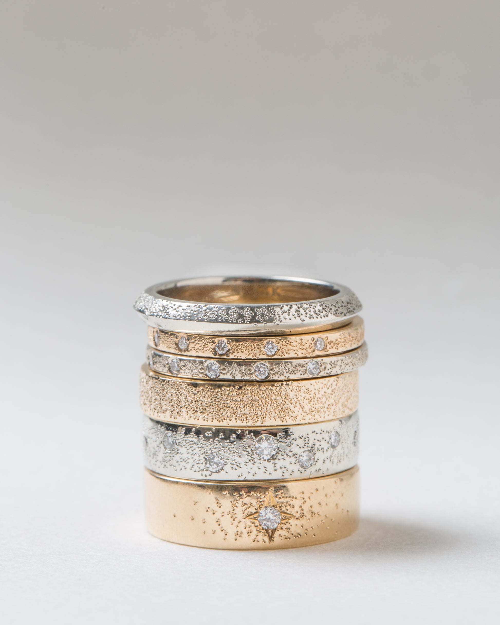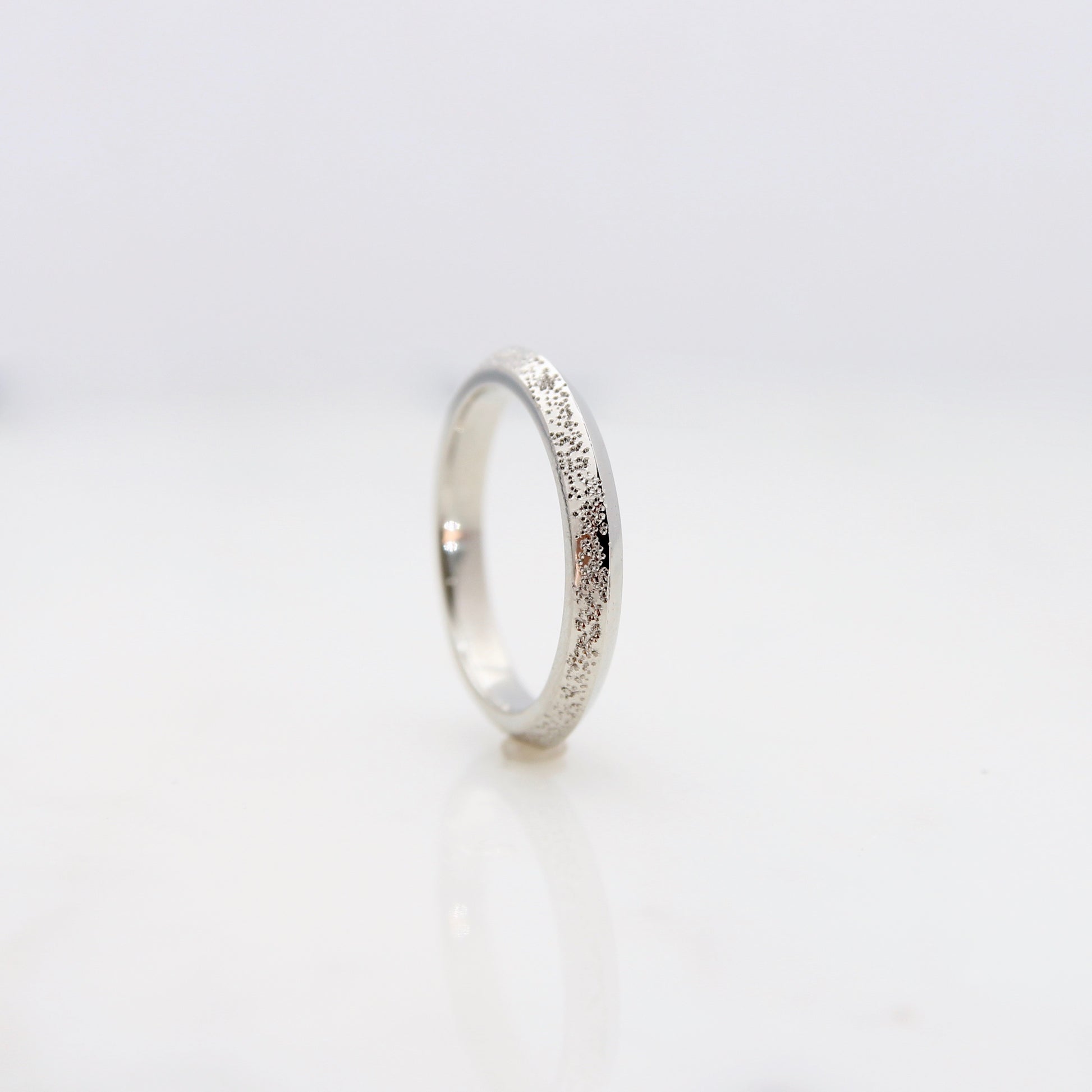 Our take on a classic knife edge band. Half polished and half Stardust, this band is bold and edgy.
