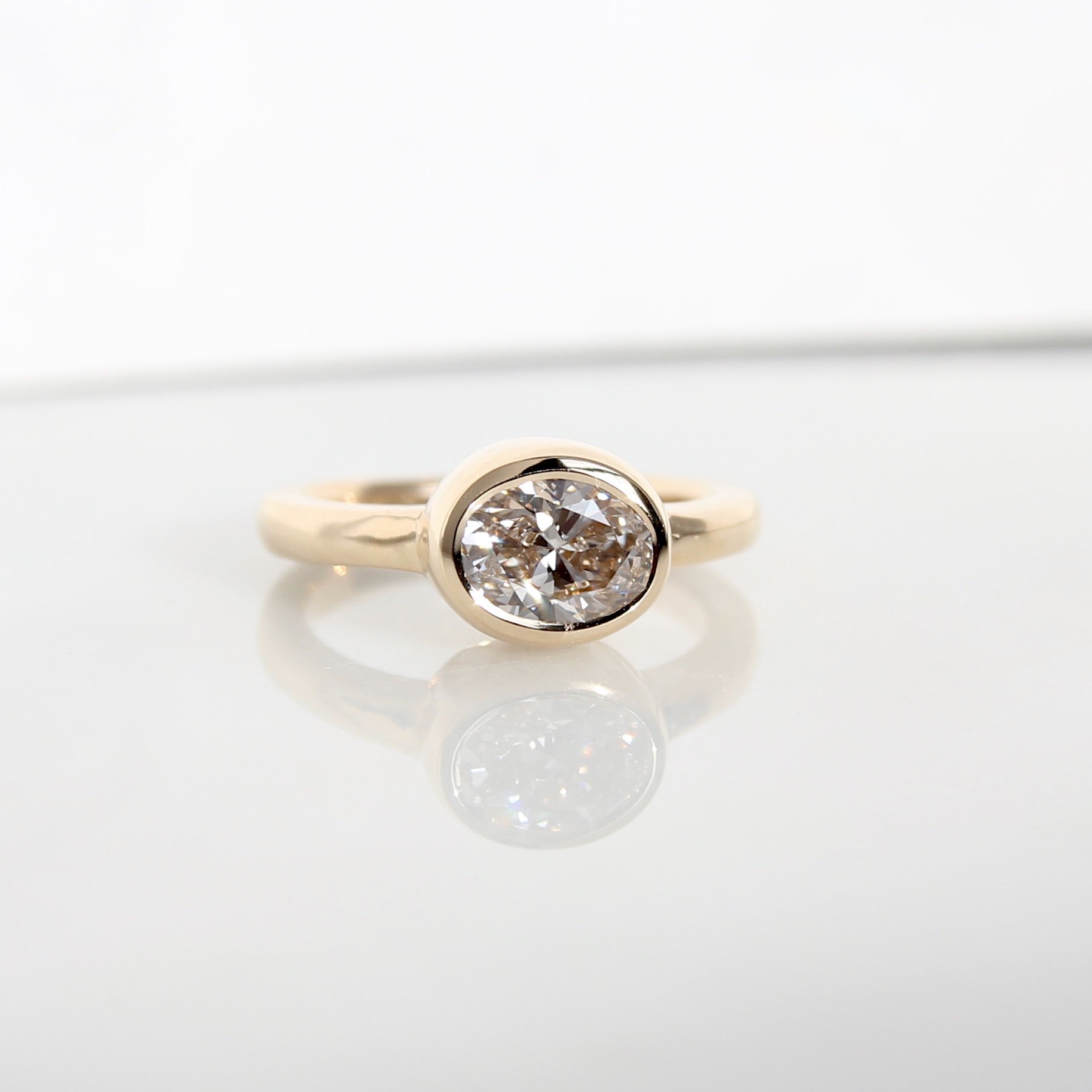 An understated solitaire featuring a 1.13ct VVS1 I lab-grown oval brilliant diamond.