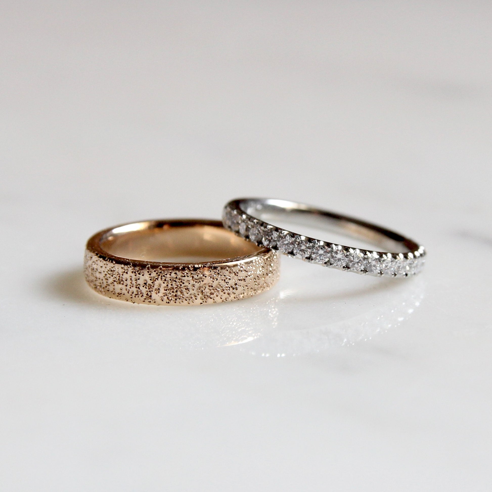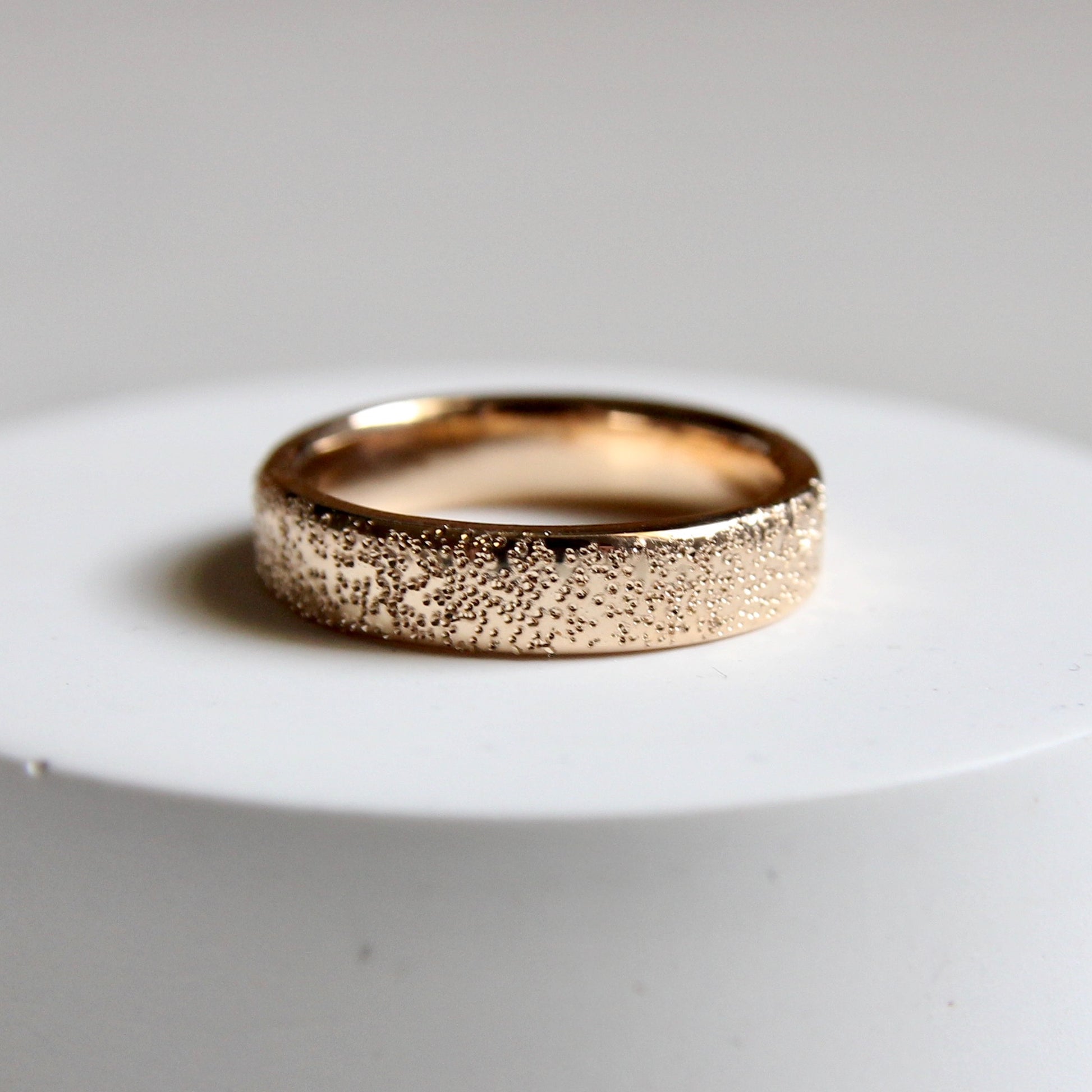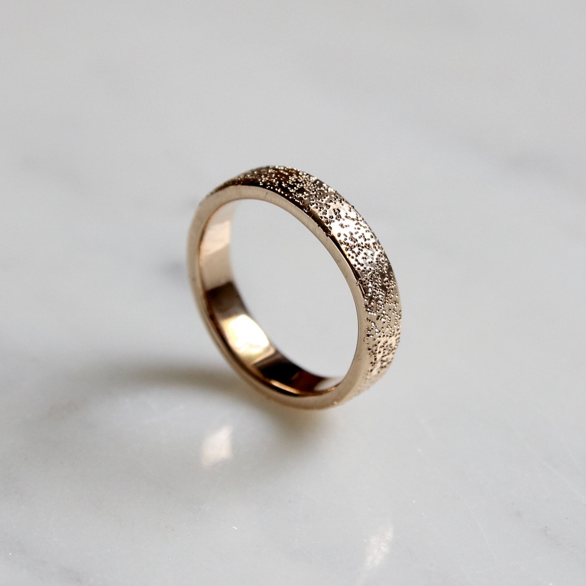 This classic band features our signature Stardust texture. It's the perfect textural solid gold ring. 4mm wide and made to order in solid 14k gold.