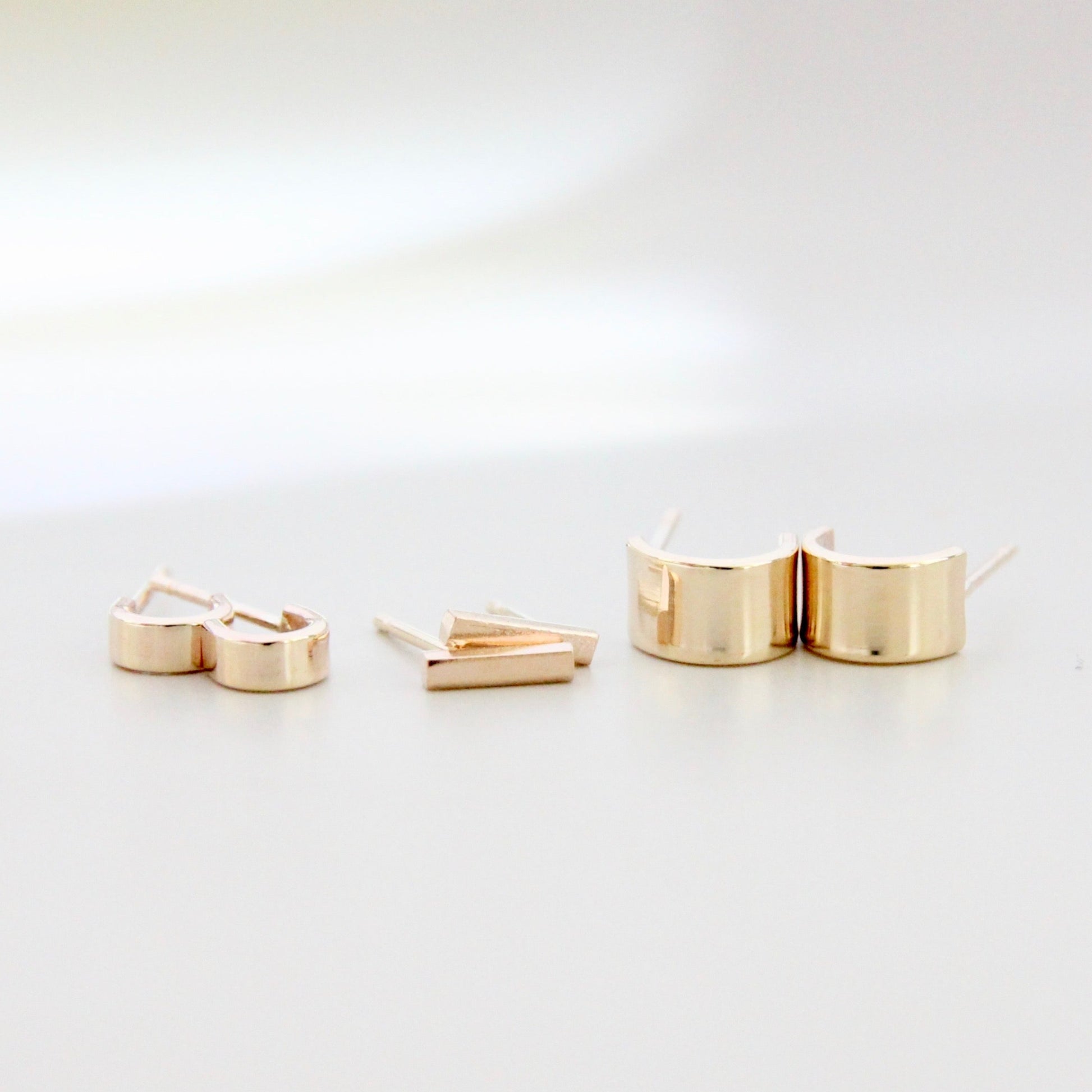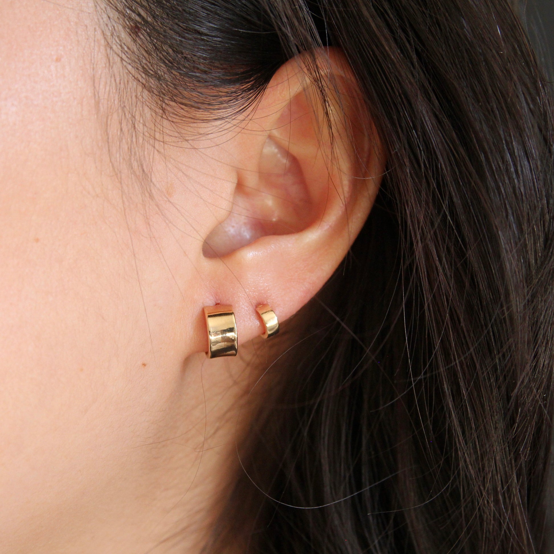 Hand forged in 14k yellow gold these wide cuff earrings hug your ear lobes just right.